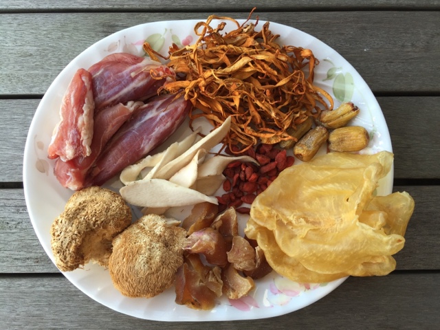 4) 蟲草花、淮山、杞子、猴頭菇、蜜棗用水沖洗略浸備用